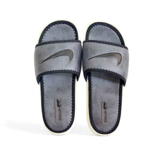 Ash Grey Pure Leather Nike Slides - HE - 3