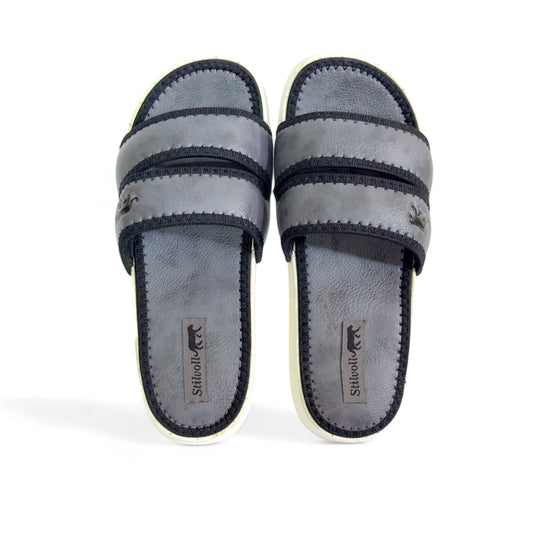 Ash Grey Strap Pure Leather Slides - HE - 4