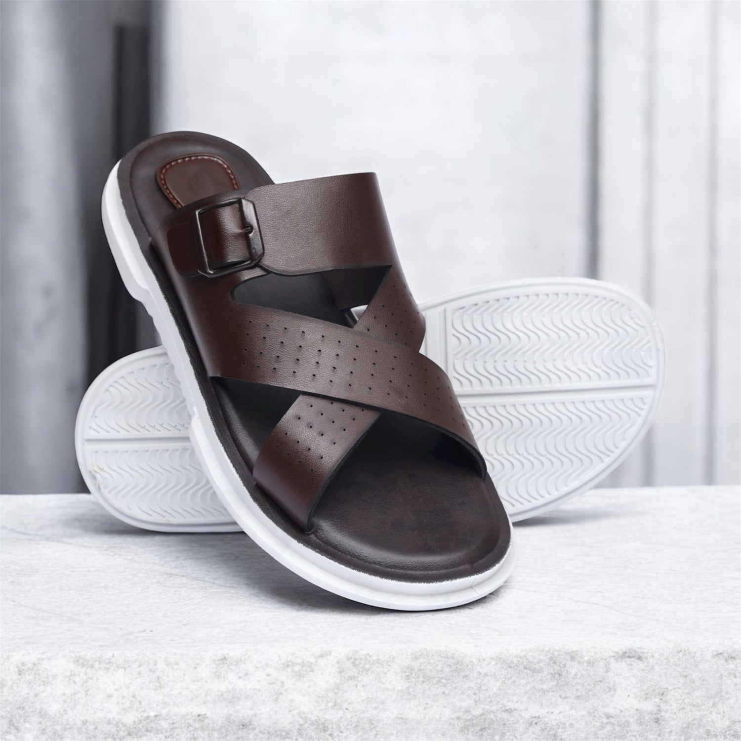 Dotted Cross-Buckled Brown Slides