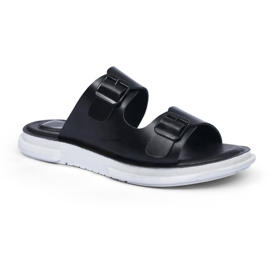 Premium Black Strap Pure Leather Slides - HE - 4