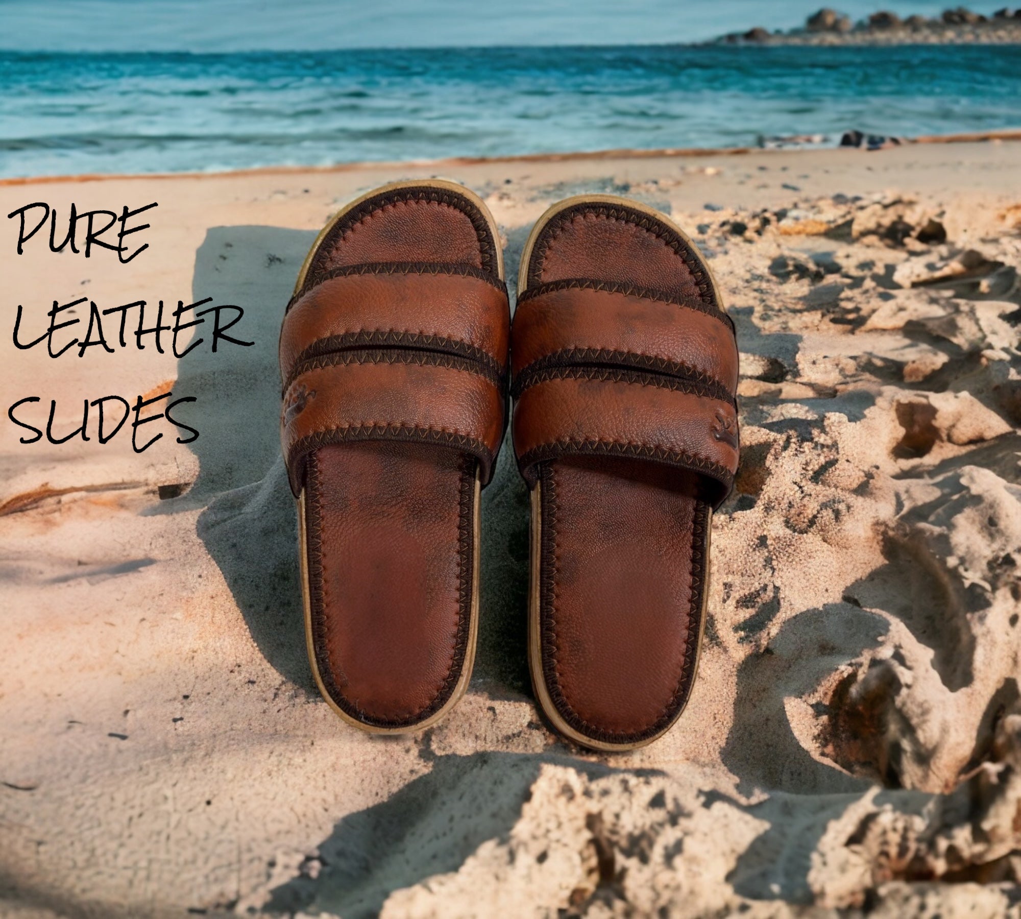 Ash Grey Strap Pure Leather Slides - HE - 4