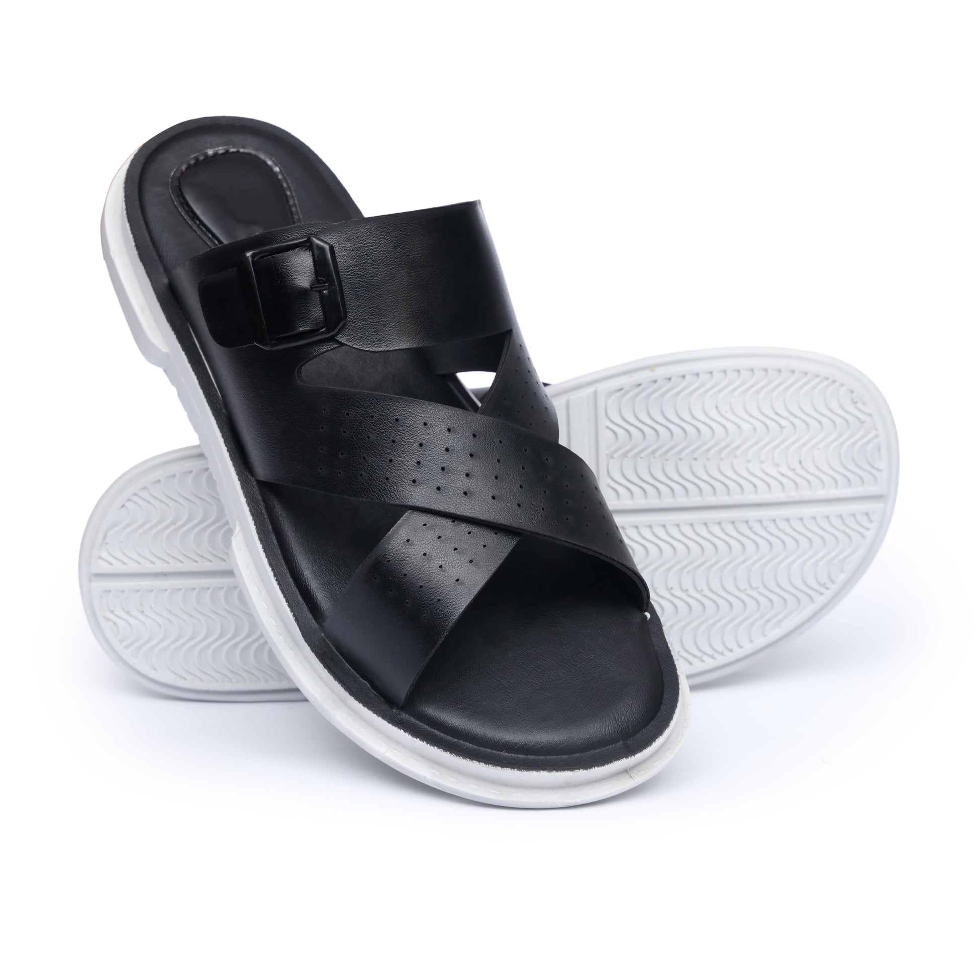 Dotted Cross-Buckled Black Slides